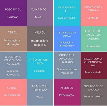 Infindáveis e inesgotáveis são os sentidos que o cu pode assumir nas igualmente sem-fim expressões idiomáticas da nossa Língua, inculta e chula, por isso bela.